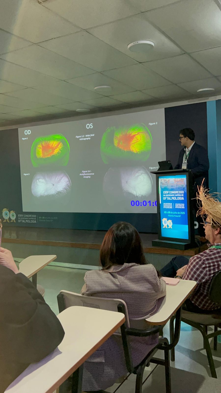 Contamos com a apresentação de caso sobre Albinismo Ocular assim como Maculopatia em Torpedo. A Fundação incentiva e apoia a participação dos residentes nos eventos acadêmicos.